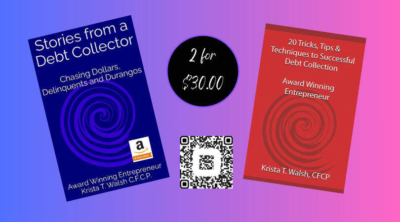 Krista has written and self-published two books on her expertise in collections management and accounts receivable.Click below to view and purchase her books.